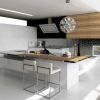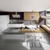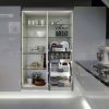 Стильная и современная кухня из коллекции Сontempora от итальянского производителя Aster Cucine. Эта функциональная модель состоит из центрального рабочего острова, удобного стеллажа для хранения посуды и модульного элемента с местом под телевизор. В отделке этой минималичтичной модели используется натуральный шпон, глянцевый лак и мятый металл. Эту модель отличает отсутствие ручек и лишних деталей.