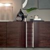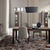 Стильная мебель для столовой комнаты гармонично сочетает в себе деревянный раскладной стол, кожаные стулья, буфет со створками и лево-/правосторонний серванты. Мебель изготовлена и фанерована ясенем со щеточной обработкой. Окраска и лакировка выполняется одним из многих предложенных компанией вариантов. Стол имеет металлическую опорную раму для раскладывания удлинителей. Для декора буфета и сервантов имеются вставки из Swarovski elements и накладка из экокожи или kaiman, кроме того, дополнительно можно заказать их внешнюю подсветку. Серванты имеют закаленные стекла с бронзовой отделкой и внутренние светодиодные светильники.