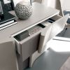 Элегантный буфет с выдвижными ящиками станет гармоничным дополнением в столовой или гостиной комнате. Столешница модели фанерованная ясенем со щеточной обработкой, после окрашенная/лакированная с открытыми порами или глянцевая. Также имеется в версии из полированного мрамора “Emperador Dark”. Для декора внешних панелей изготовителем предлагаются вставки из кристалов Swarovski и накладка из экокожи (как на фото) или kaiman. Буфет сочетает в себе створки, оборудованные петлями с амортизирующим механизмом закрытия, и выдвижные ящики с направляющими из стали и амортизированным закрытием.