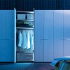 Корпусные шкафы Soft-1 с распашными створками выполнены из древесины с различными разновидностями отделки. Высота моделей предложена в трёх версиях, а ширина варьируется за счёт количества модулей, что позволяет оптимально подобрать те габариты модульного шкафа, которые гармонично впишутся в интерьер вашей спальной или гардеробной комнаты. Высокие вместительные шкафы Soft-1 оборудованы внутренней подсветкой и имеют множество полок, а также держатели для вешалок. Все створки моделей визуально разделены на две части, между которыми имеются хромированные алюминиевые ручки.
