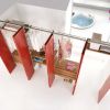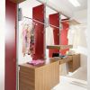 Модель в современном стиле. Дверцы выполнен в красном цвете. Удобная и вместительная гардеробная комната.