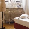 Уютная спальня для ценителей классики от итальянской фабрики Chelini. Этот необыкновенный комплект включает в себя: большую кровать с обитым изголовьем, комод с выдвижными полками, торшер и стильный подсвечник. Каркас мебели выполнен из массива древесины. Обивка представлена текстильная, но по желанию заказчика она может быть заменена на натуральную кожу.