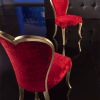 Итальянские мягкие стулья LOVE – это оригинальная идея, неповторимый итальянский дизайн и качественное исполнение мебели. Модель гармонично сочетает в себе золотистый каркас, форму спинки, напоминающую сердце, и красный бархат в обивке. Такой стул красиво расположится возле туалетного столика в женской спальни, а набор из таких изделий придаст романтичности и торжественности комнате для приёма гостей.