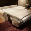 Незаменимая в интерьере вещь это - диван. Диван – универсальный предмет моделирования пространства. Большой мягкий двухместный диван представлен в текстильной обивке светлого тона с окантовкой из той же высококачественной материи. Диван раскладной на металлическом каркасе, с низким мягким изголовьем и с большими округлыми подлокотниками. Чехлы съемные, что дает возможность в облегченном уходе за ними. В собранном виде подушки сиденья независимы. С таким диваном Вы забудете о проблеме дополнительного спального места.