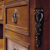 Деревянная мебель коллекции Chambery для домашнего кабинета состоит из письменного стола, вращающегося круглого кресла и вместительного книжного шкафа. Модель письменного стола имеет элементы состаривания поверхности, высокие ножки и выдвижные ящики над ними. Рабочая зона столешницы покрыта кожей, а качественная металлическая фурнитура украшает не только ящики, но и углы стола. Пространство книжного шкафа разделено на четыре вертикали, каждая из которых имеет две верхних и одну нижнюю полки, а между ними – по два выдвижных ящика, оформление которых выполнено в едином стиле с ящиками письменного стола.