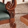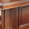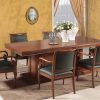 Стол на массивном основании и кресла с деревянными подлокотниками идеально подойдут для деловых переговоров или же приема гостей. Удобные кресла с кожаной обивкой позволят каждому гостю комфортно расположится за деревянным прямоугольным столом, размеры которого позволят оптимально разместить шесть персон. Вся мебель выполнена из ценных пород дерева, а шикарная отделка каждого изделия делает весь комплект неповторимым и уникальным.