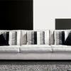 Диваны Santos от итальянского производителя De Angeli имеют каркас из массива ели, который полностью закрыт съемной текстильной обивкой. Съемные подушки сидений наполнены гусиными перьями с недеформируемой основой из пенополиуретана и покрыты тканью с застежкой-молнией. Спинка каждого дивана оформлена тканевыми подушками, набитыми специальной мягкой и гипоаллергенной смесью перьев и силиконовых обработанных полиэфирных волокон. Ножки моделей выполняются из металла с полированной отделкой. В дополнение к диванам можно приобрести декоративные подушки.