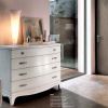 В композицию спальни входит: прикроватная тумба с двумя выдвижными ящиками,комод с четырьмя выдвижными ящиками и кроватью на ножках с высоким мягким изголовьем. Модели спальни изготовлены из массива дерева в отделке - белый посеребренный дуб. Изголовье кровати выполнена из кожзама белого цвета. Варианты отделки Вы сможете выбрать из ассортимента компании. В спальне от фабрики MAV можно просто наслаждаться покоем и гармонией.