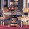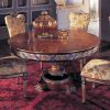 Дизайнерское решение этого изящного круглого стола просто потрясающе. Сразу ощущается тонкое чувство роскоши и стиля итальянских мастеров высшего класса. Стол выполнен исключительно из пород ценного дерева, установлен на массивную центральную ножку. Вся его поверхность расписана резьбой и покрыта слоем блестящего лака.