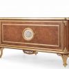 Красивый и удобный письменный стол выполненный в классическом стиле, опирается на резные ножки. Стол имеет семь выдвижных ящичков, по три с каждого края и одним по центру. Ящички декорированы круглыми ручками. Столешница окантована тонкой полосой цвета золота. Стол выполнен в стокойном цвете натурального дерева. Дополнением к столу пойдет стул с мягким сиденьем