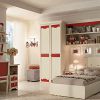Детская комната в темно-красном цвете подойдет как для мальчиков, так и для девочек. Шкаф с кроватью, письменный стол и стул – здесь есть все необходимое для домашнего уюта. Красные линии в дизайне придают комнате современный стиль.