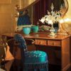 Спальный гарнитур в стиле ар-деко, состоящий из двуспальной кровати, прикроватной тумбочки, туалетного столика с зеркалом и аккуратного кресла. Спальня выполнена в изумрудной гамме. Этот цвет приводит душу в состояние покоя и умиротворения. Полностью ручная работа.