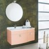 Подвесная мебель для ванной в современном стиле. Настенный блок имеет розовую расцветку(076), 2 ящика.Столешница из мрамора, под ним фарфоровая раковина.В комплекте зеркало и подсветка