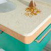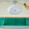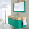 Мебель для ванной выполнена в современном стиле.Настенный блок имеет зеленую расцветку(093) и отделку деревом (клен). Столешница белого жемчужного цвета, под ней овальная фарфоровая раковина .В комплекте зеркало и подсветка