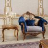 Трехместная софа в викторианском стиле. Полностью ручная работа из массива дерева. Впечатление от общего вида усиливается благодаря отделке сусальным золотом. Великолепные ткани ярко-синего бархата дополнены утонченными кристаллами Swarovsky. Столик выполнен из ореха бриара и идеально вписывается в интерьер.