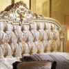 Спальня в стиле венецианского барокко. Полностью ручная резьба из твердых пород дерева. Нежные оттенки ткани идеально сочетаются с цветом слонвой кости и еще больше подчеркивают позолоченную резьбу и великолепную ручную роспись.