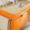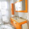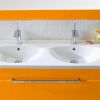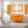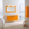 Прекрасная подвесная мебель для ванной в современном стиле.Настенный блок имеет оранжевую расцветку (091), столешница фарфоровая, 2 раковины. Настенный шкафчик имеет ящик и дверцу, 2 полки. Имеется вариант с мраморной столешницей