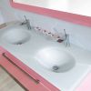 Прекрасная подвесная мебель для ванной в современном стиле.Настенный блок имеет розовую расцветку (090), столешница из черного камня, под ней фарфоровый умывальник. Возможен вариант с белой столешницей.В комплекте зеркало и подсветка