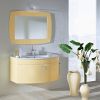 Удобная и изысканная подвесная мебель для ванной в современном стиле.Настенный блок имеет расцветку светлого меда (074), сам блок изогнутый.Столешница фарфоровая. В комплекте зеркало и подсветка.