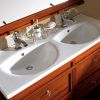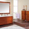 Удобная и изысканная напольная мебель для ванной в классическом стиле.Основной блок имеет расцветку вишневого дерева , Столешница фарфоровая, с двумя раковинами. В комплекте зеркало и подсветка. Напольная тумба так же имеет отделку вишневого дерева, верх фарфоровый. Возможен вариант отделки сусвльным золотом и серебром