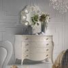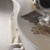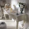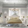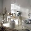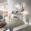 Мебельный гарнитур для спальни от фабрик BBELLE. В центре композиции большая двуспальная кровать с обитым изголовьем капитоне, обитым рингом и резными ножками. С обеих сторон стоят прикроватные тумбочки с ночными абажурами. В комплект входят два туалетных столика. Также интерьер дополняется мягким пуфом, комодом и удобным резным креслом.