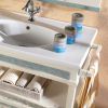 Удобная и изысканная мебель для ванной в классическом стиле.Основной блок имеет расцветку натурального ореха и сполнен в виде консоли.Столешница фарфоровая с умывальником. В комплекте зеркало и подсветка. Имеется также тумба с отделкой под орех.Возможен вариант отделки в бело-голубых тонах