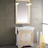 Удобная и изысканная мебель для ванной в классическом стиле.Основной блок имеет расцветку натурального ореха, ящики выдвижные.Столешница фарфоровая с умывальником. В комплекте зеркало и подсветка. Возможен вариант с белой отделкой и росписсю ручной работы