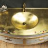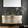Фасад основного блока украшен сусальным золотом и серебром а также росписсю, ручная работа. Столешница и умывальник стеклянные,также украшены позолотой. В комплекте зеркало и подсветка. Ручки для ящиков тумбы украшены кристаллами Сваровски