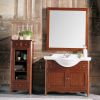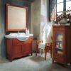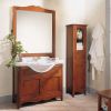 Удобная и изысканная мебель для ванной в классическом стиле.Основной блок имеет расцветку натурального ореха с инкрустацией.Столешница фарфоровая ,полукруглая с умывальником. В комплекте зеркало с инкрустацией и подсветка.Имеется также тумба для полотенец с отделкой под орех. Возможен вариант без инкрустации, а так же с отделкой вишневым деревом. Тумба для полотенец так же имеет несколько вариантов