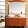 Удобная и изысканная мебель для ванной в современном стиле.Основной блок имеет расцветку вишневого дерева, ящики выдвижные.Столешница из перламутрового капня с овальными умывальниками. В комплекте зеркало и подсветка