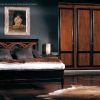 Композиция для спальни выполнена из массива дерева. В спальню входит двухспальная кровать, шкаф с четырьмя открывающими дверями, прикроватная тумбочка с двумя выдвижными ящиками и комод с откидной передней панелью и зеркалом. Все модели спальни выполнены в отделке двух оттенков, и имеют искусственное состаривание. Композиция придется по вкусу ценителям классики.