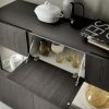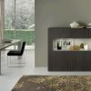 Тумба-комод с нишей от итальянского производителя. Варианты отделки: глянцевый Cenere, внутренняя отделка витрины: крашеный Декор Tortora. Стол CLASS матовый Cenere. Стулья CLUB с обивкой из экокожи.
