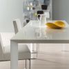 Стол DIAMOND раздвижной. Отделка: алюминий, окрашенный в Bianco цвет, столешница глянцевое стекло Bianco. Подложка: ДСП (Толщ. 10 мм), покрытая с одной стороны белой бумагой, а с другой стороны черной бумагой. Каркас: крашенный литой алюминий с уголками из штампованного алюминия.