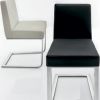 Современный стул FLO с каркасом из хромированного глянцевого металла, сиденье и спинка с набивкой из профилированного пенополиуретана, обитой белым или черным кожезаменителем (неснимаемый).