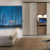 Шкаф с открывающими наружу дверцами. Возможно исполнение в двух цветах - под натуральное дерево и белый. Внутри шкафа имеется подставка под телевизор. Дверцы выполнены в виде тонких параллельных дощечек, соединенных вместе. Ручки выполнены из никеля. Часть створок открываются раздвижным способом.