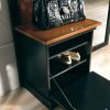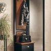 В мебельный комплект для прихожей от Vaccari International входит зеркало величиной в рост, обувница и вешалка для одежды. Модель выполнена в строгой черной цветовой гамме с коричневыми вставками, что только оживляет композицию.