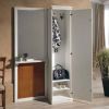 Данный комплект произведен итальянской фабрикой Vaccari International. В набор входит зеркало, небольшая полочка и шкаф. Шкаф имеет две полочки снизу. Их можно использовать для сумочек, зонтов и прочих аксессуаров.