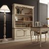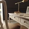 Изящная мебель для кабинета виполнена в классическом стиле. Набор состоит из книжного шкафа,стола и стула. Отделка моделей исполнена в белых тонах с темной окантовкой на некоторых деталях. Стол имеет три выдвижных ящика, отдельные элементы ящиков украшены россписсю ручной работы. Ручки ящиков металлические.
