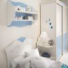 Мебельная композиция для спальни мальчика Prop 03 от итальянского производителя Pentamobili. Набор включает одну односпальную кровать, вместительный шкаф с двумя створками, угловой стол со стулом и комод с 7-ю ящичками. Композиция выполнена в нежно-голубых тонах и имеет классический дизайн.