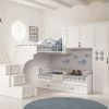 Мебельная коллекция Prop 06 от итальянской фабрики Pentamobili. Этот гарнитур идеален для обустройства детской спальни. В комплект вошли диван-кровать, в комплекте решётка и выдвигающаяся решётка. Поднявшись на чердак по удобной лесенке, ваш ребенок сразу попадёт на свое спальное место. В комнате предусмотрена библиотека, на полочках которой вы сможете разместить любимые книги.