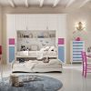 Мебельная коллекция Prop 13 от итальянской фабрики Pentamobili. В набор вошли две кровати: верхняя и нижняя с однонаправленными самоблокирующимися колесиками, шкаф-мост, письменный стол с 3 ящиками и стул. Вся мебель выполнена в белоснежном цвете с цветными вставками, что придает интерьеру живой вид.