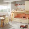 Детская мебель для спальни итальянского производства. Фабрика Pentamobili включила в свой комплект кровать-чердак, диван кровать. Диван имеет в комплекте решётку и выдвигающуюся решетку. Шкаф располагается поблизости. Письменный стол со стулом идеально завершают композицию.