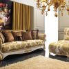Итальянская мебельная компания Bedding представляет вашему вниманию мини-набор мягкой мебели для гостиных комнат. В комплект входят двухместный диванчик и кресло с пуфом для ног. Мебель обита роскошной тканью. Спинка дивана обита натуральной кожей, а его нижняя часть украшена сусальным золотом. Кресло с пуфиком замечательно дополняет этот набор и выполнено в том же стиле, что и остальная мебель.