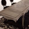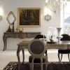Мебель для столовой из коллекции Bisanzio выполнена в классическом стиле и покрыта серым матовым лаком. Стол раскладной, гладкая столеница покрыта растительным орнаментом. Стул имеет мягкую текстильную обивку из ассортимента компании производителя. На моделях присутствуют росскошные резные элементы