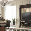 Изысканная подставка под телевизор из коллекции Bisanzio выполнена в классическом стиле. Модель изготовлена из натурального дерева и покрыта глянцевым темным лаком. Отдельные элементы подставки покрыты резным узором, так же на модели присутствуют деревянные накладки покрытые тонкой резьбой.