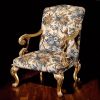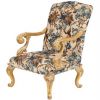 Роскошное, по истине королевское кресло Gustav от фабрики Duresta Upholstery Limited вызывает восхищение и это неудивительно! Ведь подлокотники и ножки кресла вырезаны вручную из дорогостоящего дерева, а затем покрыты позолотой. В качестве обивки используется ткань отличного качества с интересным принтом.