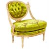 Каркас кресла вырезан вручную из дорогостоящего лиственного дерева и покрыт позолотой.