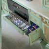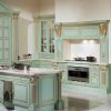 Кухня в зеленых тонах Angelo Capellini представляет собой весьма гармоничную композицию, которая обьединяет классический стиль и роскошь натурального дерева и мрамора с современной функциональностью. Кухня поставляется по разменам заказчика, также в неё может быть встроена любая бытовая техника. Отделка мебели нежно-зеленая с позолоченными элементами.