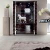 Очень красивая витрина с двумя стеклянными дверьми. Изготовлена из черного дерева макасcар. Внутри находятся две регулируемые полки, изготовленные из стекла. Боковые стенки витрины дополнены зеркальными вставками. Ручки выполнены из нержавеющей стали. Удобство такой модели в том, что она оборудована 2-мя светодиодными фонариками для подсветки.