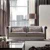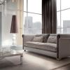 Просторный мягкий диван 2-х местный, а также 3-х местный вариант. Обивка в различных материалах: кожа, бархат, замша, нубук. Пуховые сиденья из полиуретана. Ножки дивана защищает хром нержавеющей стали. Приглядитесь к этой модели дивана. Его уникальностью являются подлокотники, очень красивой формы. Они изготовлены из шпона дерева макассар.